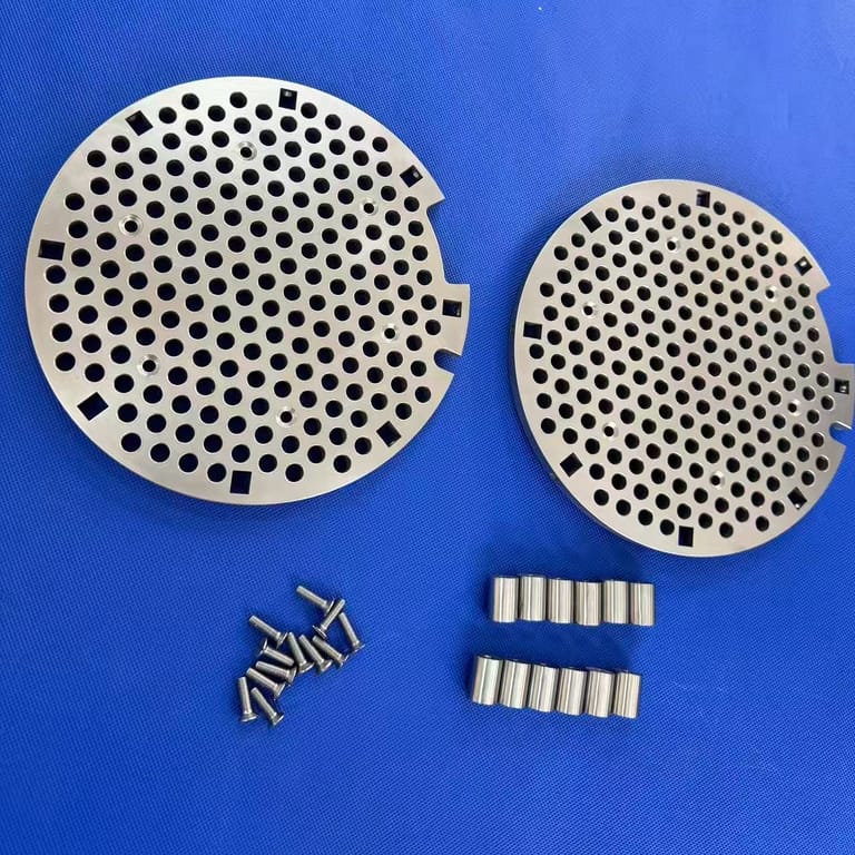 Upgrade your operations with our premium metal perforated disc set, featuring two precision-engineered circular discs crafted from high-quality metal for exceptional durability and efficiency. Each set includes multiple robust bolts and cylindrical spacers to ensure secure and customizable installation, making it ideal for industrial filtration, separation, or advanced machinery setups. Available in a sleek silver finish, these discs are offered in various diameters and hole patterns to match your specific project requirements. Elevate your equipment's performance and reliability with this versatile and indispensable solution.